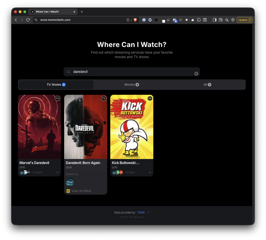 • Where Can I Watch? is a web application that helps users quickly find which streaming services offer a particular show or movie.