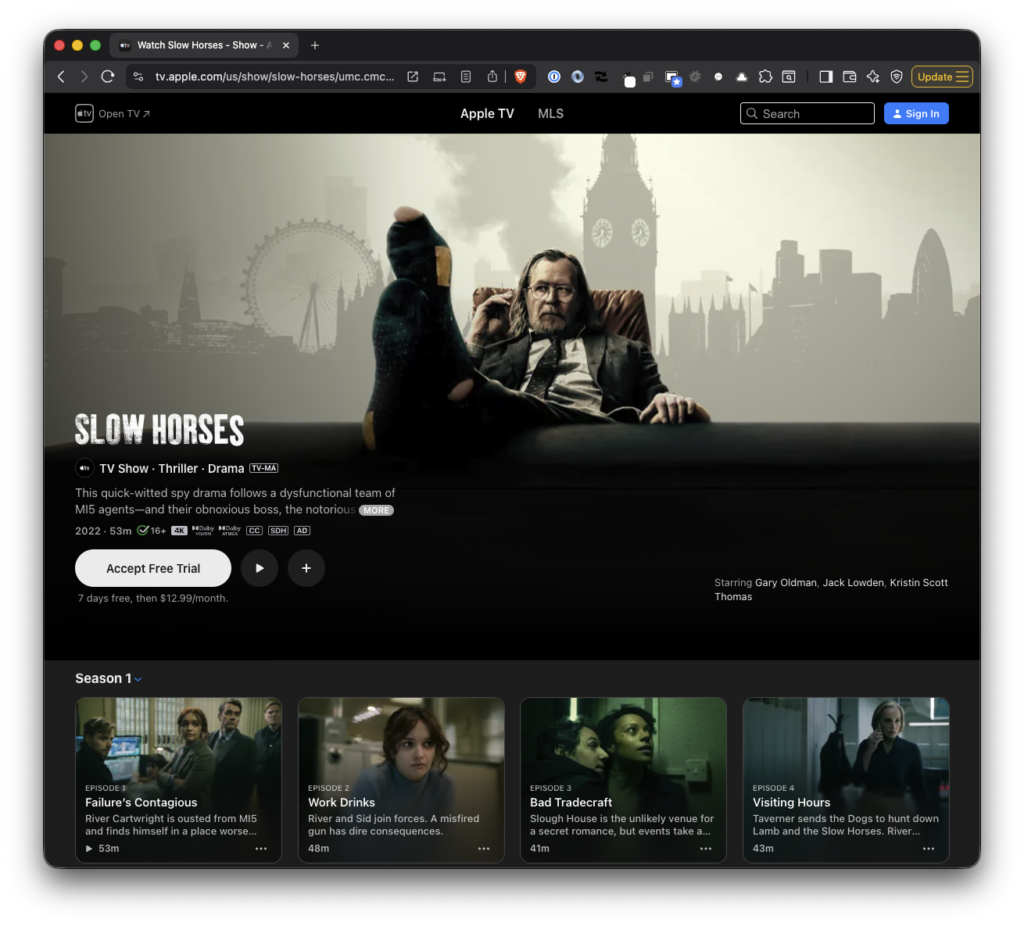 • Slow Horses. I don’t know what took me so long to watch this show but once I started, it’s all I watched when exercising. I covered the first four seasons during the summer and finished just in time for the fifth season to start in the fall.